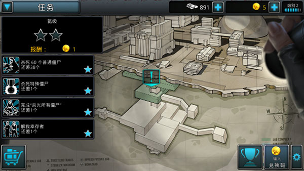 1、任务界面显示当前目标优先级,建议优先完成僵尸清除类基础任务获取初始资源