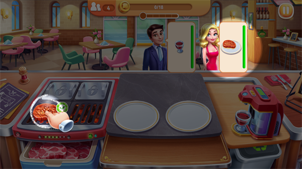 该模式无需手动升级厨具,系统随关卡推进自动解锁高级设备