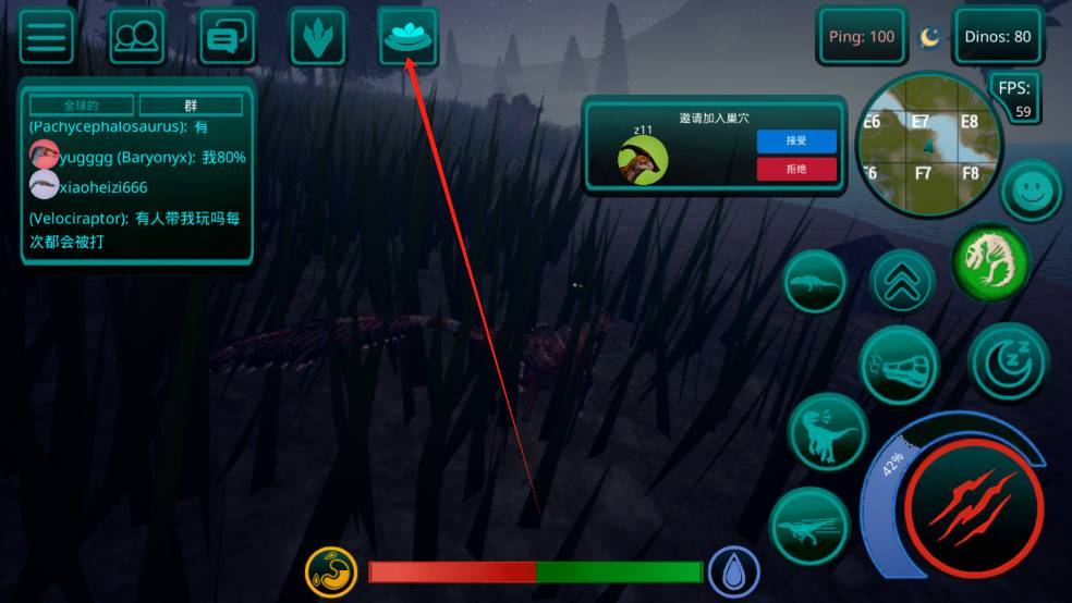 完全成长且账号达5级的恐龙可建造巢穴,通过邀请系统组建恐龙家族,家族成员可共享领地资源与防御体系。