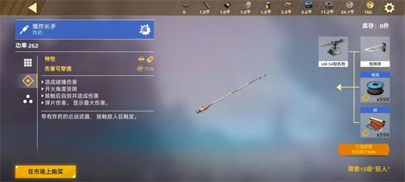 3、爆炸长矛:在创世战车移动版里,有一种独特的近战武器叫“爆炸长矛”,它是一种与敌人碰撞就会产生爆炸伤害并随即消失的一次性武器。因其攻击方式类似自爆,所以攻击力颇高。