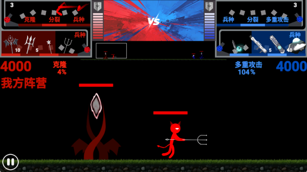 红蓝火柴人对决游戏是一款极具对抗性的双阵营策略对战游戏。玩家可自由选择恶魔阵营或科技阵营,两大阵营的攻击体系截然不同——恶魔阵营以魔法攻击为核心,科技阵营则以现代化枪械为主要武器。无论选择哪个阵营,通过提升战斗数值即可高效压制对手。