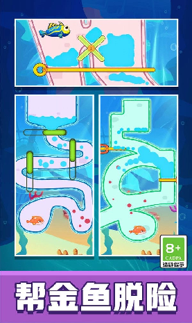3、遇到特殊道具时,玩家要合理运用,借助道具的力量让小金鱼更安全地通过危险区域。