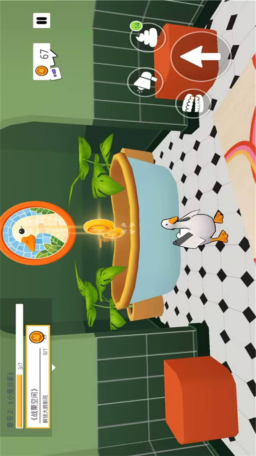 1、操控大鹅做出各种滑稽动作,在开放场景中自由实施创意整蛊计划。