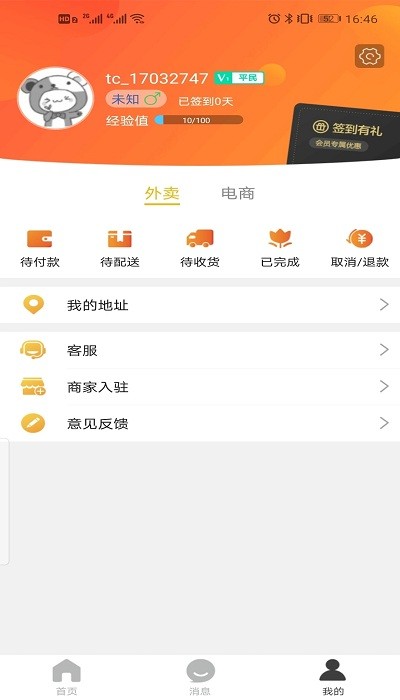 1、选择外卖或电商即可查看显示的订单信息和订单状态,方便管理分类订单;
