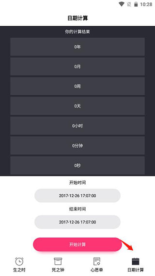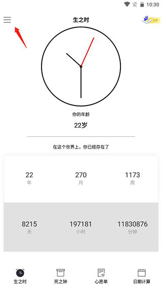 2、进入应用后在生之时中可以看到自己已活的年、月、日、小时、分钟是多少
