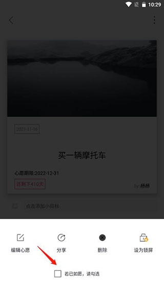 5、点击左上角的添加,设置自己的心愿,点击完成