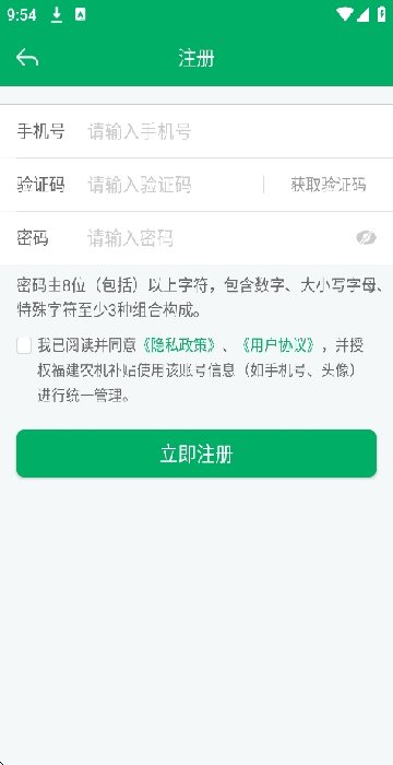 4、输入手机号、点击发送验证码,使用验证码后即可进行注册操作