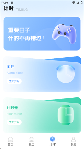 4. 点击页面下方的‘计时’图标,即可看到闹钟和计时器功能。