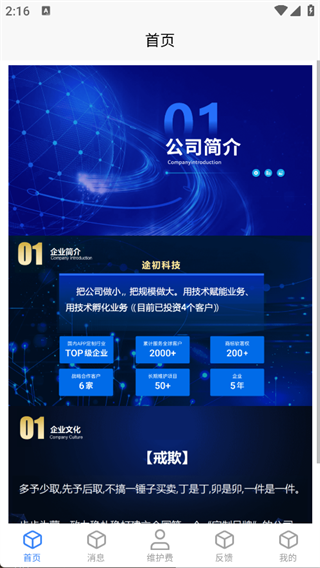 2. 在主页面即可看到公司简介和企业文化等介绍;