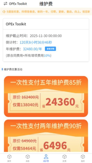 3. 点击页面下方的维护费,即可看到清晰的费用情况;
