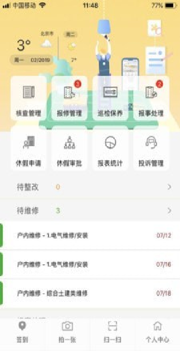 报修管理、报修处理、巡检保养、休假申请等等都可以线上完成,全面简化工作人员的工作流程;