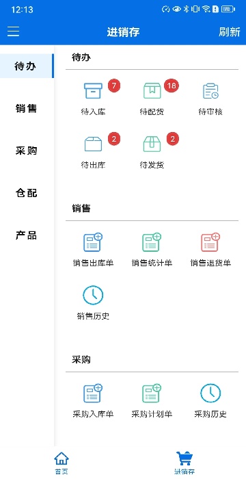 2、进入进销存页面,即可查看所有销售、采购等多方面的信息
