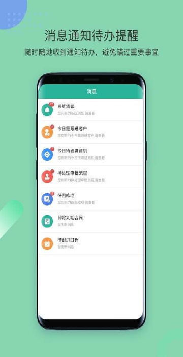 4、销售助手统计超7天未跟进客户、30天内将签单商机、7天内需回款合同、30天内将到期合同等信息。