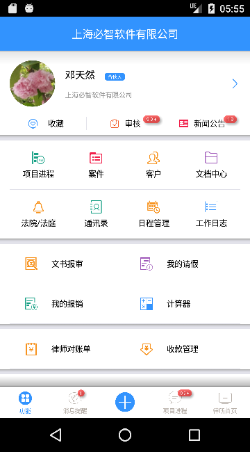 律师e通app专为律师行业设计,是一款超实用的协同办公云产品。它提供强大的云办公功能,能帮律师在线搞定日常工作事务,大幅提升办公效率。文书报审、律师对账单、天数计算器、内部通讯录、工作日志总结等功能一应俱全,为律师带来一站式法律办公服务,处理各类法律案件更轻松。处理案件时还能手动添加进度,方便掌握案件情况。欢迎广大律师从业者下载使用。