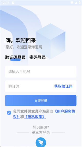 2. 输入手机号和验证码,即可快速登录,进入主页面;