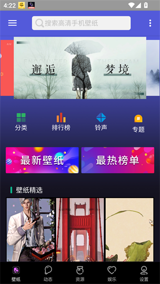 2、在首页可以看到最新壁纸以及最热榜单等功能入口;