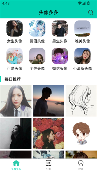 3、分类板块里还有各种类型的头像分类,按照自己喜好去选择即可;
