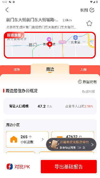 3. 结果出来后,可与其他调研位置对比,隐藏相同数据项,挑选最合适位置,然后导出pdf保存。