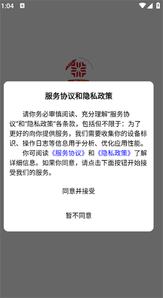 1. 下载并安装APP,点击‘同意并接受’,即可进入登录页面;
