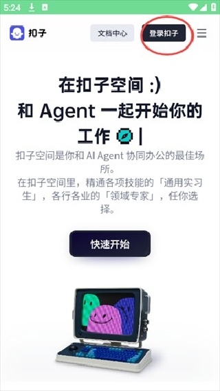 2. 打开软件之后,点击右上角的“登录扣子”按钮。