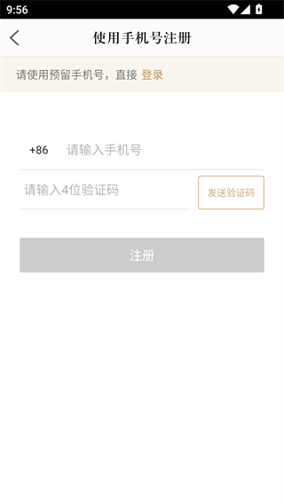 2、点击注册,输入手机号,获取验证码即可完成注册;