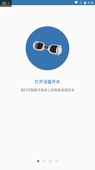 1、首先长按平衡车电源键启动设备,等待指示灯进入闪烁状态。