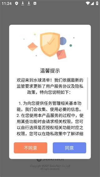 1、首次使用需在启动界面阅读并同意用户隐私协议。