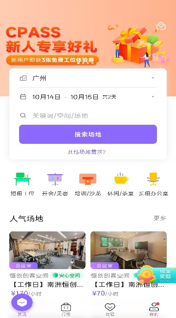 cpass是一款专门为年轻人和团队打造的办公平台app。在cpassapp里,能轻松获取当地活动信息,还能在线快速预订会议所需场地,轻松解决办公场地难题。cpass安卓版致力于打造便捷场地预定平台,场地资源丰富,可按需选择,线上快速下单实现预定。此外,cpass手机版能助用户融入当地社交圈,超实用,有需要就来下载体验。