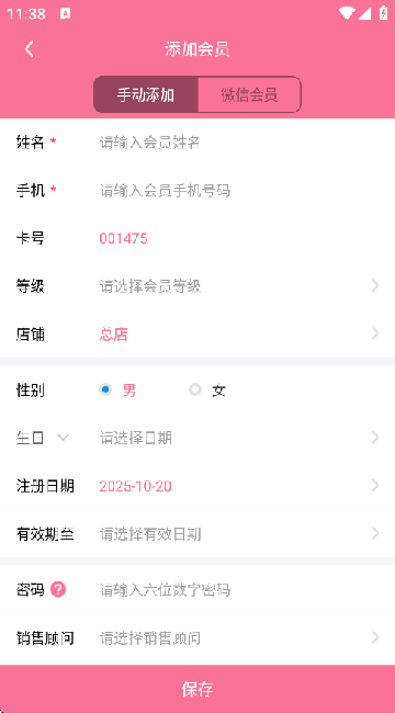 4、顾客扫码或填写信息成为会员,支持储值卡、次卡、套餐卡、时间卡等多种类型。