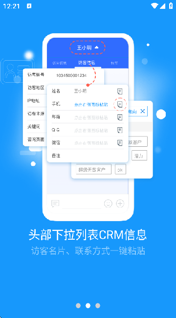 3、在手机端就能接待客户,有效帮助用户能利用好每一分钟;