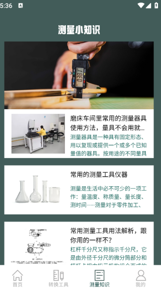 4. 点击页面下方的‘测量知识’,即可看到丰富的测量小知识,可以按需查看。