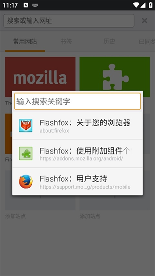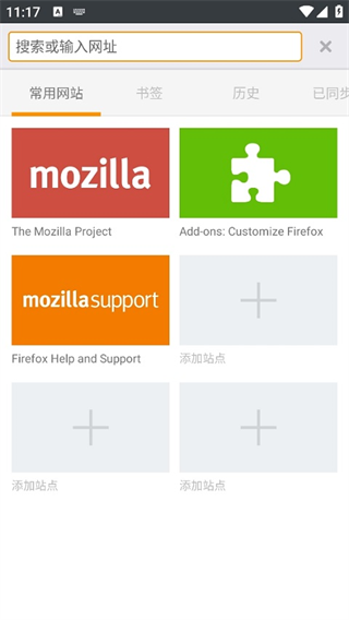 2、在首页可以看到一些常用网址,上方还能输入网址搜索;