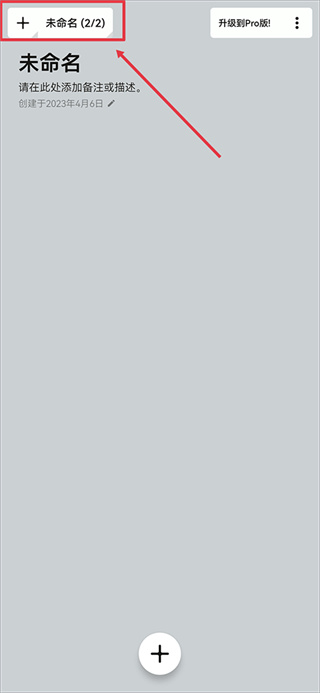 1、启动应用后点击首页左上角「+」号创建新画布,系统将自动命名为「未命名」。