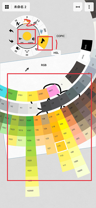 2、点击左上角工具栏中的「填充」功能图标,通过中央色轮选取目标颜色。