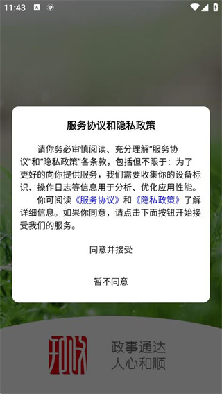 1、完成应用安装后同意用户隐私协议并登录账号。
