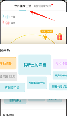 2、参与今日健康生活任务,如手动测量、穴位按摩,完成任务领积分。