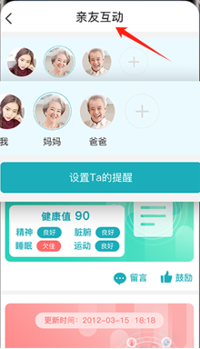 4、进行健康管理,查看亲友健康数据,接收智能提醒,科学管理健康。