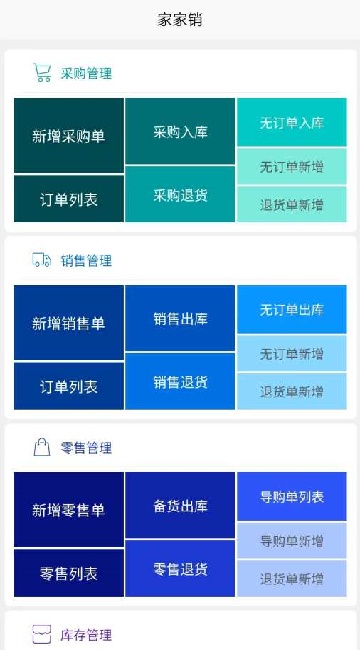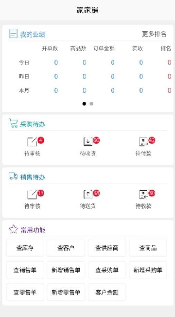 家家销主要用于销售管理服务呀,能清晰看到销售数据,像订单金额、开单数和排名都能查到,还能记录个人与公司的销售情况。依据销售数据可做趋势统计,通过图形直观呈现。它功能广泛,涵盖采购、销售和零售管理,采购单、销售单、零售单一目了然,各类报表清晰,如采购、销售、零售和仓库报表,实时查看销售订单,订单明细清晰,管理销售超便捷,有需要的用户赶紧下载吧。