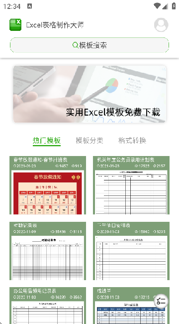 1、含有模板分类功能,方便用户能快速找到需要的模板使用;