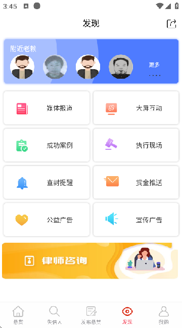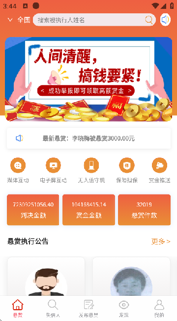 法信悬赏执行平台app是一款专门用来悬赏执行失信人信息的服务软件。它能通过悬赏的办法,帮用户快速找到要找的人。在这个应用里,用户能看到好多悬赏寻找的被执行人信息。要是看到了,就能在线反馈。它给用户提供了媒体互动、电子屏互动、悬赏保险、监控报警、在线查询等多样服务,一站式提供优质工作服务,用户可按自身需求在应用里操作。这个app还支持用户在线转发,能把内容分享给好友,一起在线知晓最新老赖信息,方便及时找到。