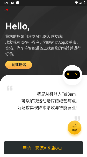 1、通过手机号和验证码登录后进入到软件中,点击下方的申请机器人。
