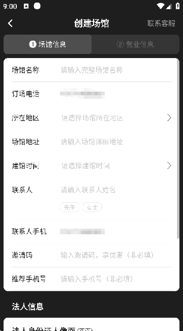 2、申请前需要你创建场馆,填写场馆的详细信息。
