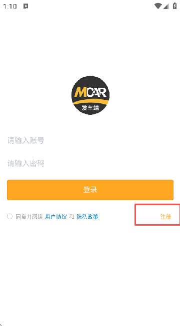 1、打开软件后进入登录界面,点击下面的注册二字。