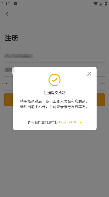 3、提交注册资料后,等待审核,如有疑问可以拨打客服电话。