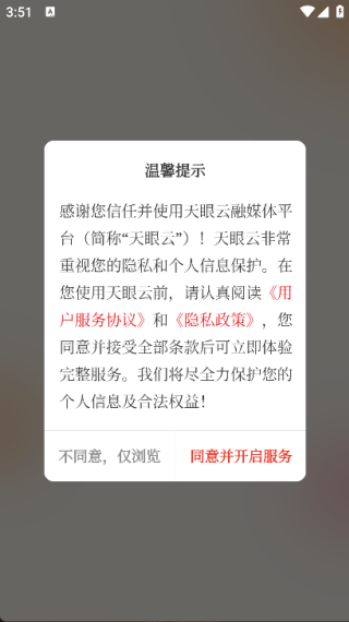 1. 下载并安装APP,点击‘同意并开启服务’,即可进入登录页面;