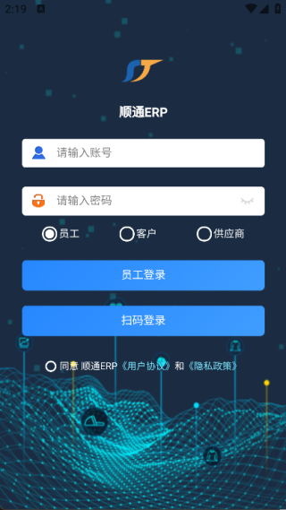 2. 输入账号和密码,即可快速登录,进入主页面;
