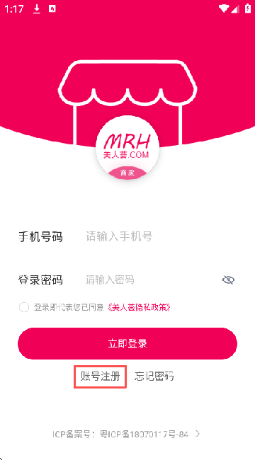 1、首先打开软件后没有注册的用户点击下方的立即注册。