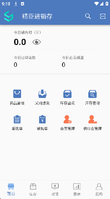 1、在精臣进销存应用app的首页,就能选择性进行操作各个功能