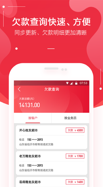 丰富的基础办公功能,客户管理、欠款查询可随时进行;
