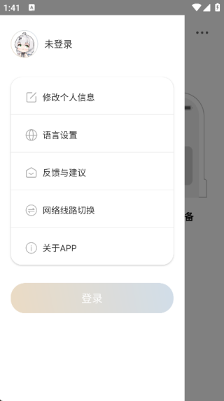 4. 在主页面左上角,点击图标,即可看到登录页面,修改个人信息或是语言设置等功能。